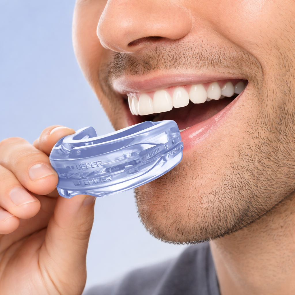 SleepZee gently repositions your jaw to keep your airways open. This ensures smooth, unobstructed airflow, letting you breathe easily and naturally through the night.